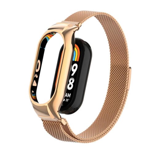 Caja de Metal Integrada + Banda Magnética Milanesa para Xiaomi Mi Band 8 (Oro Rosa)