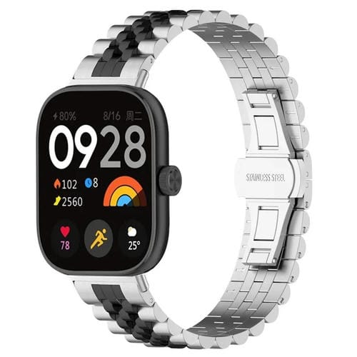 Correa de Metal para Xiaomi Mi Band 8 Pro con Hebilla de Mariposa de Cinco Cuentas (Negro Plateado)