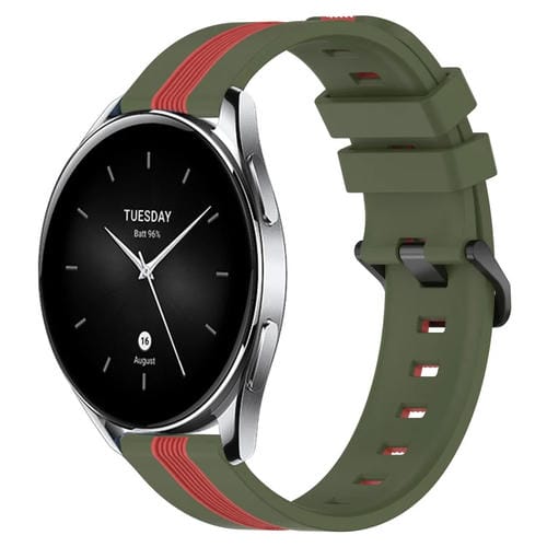 Banda de Reloj Silicona Xiaomi Mi Watch S2 46mm 22mm Dos Colores Vertical (Verde Militar + Rojo)