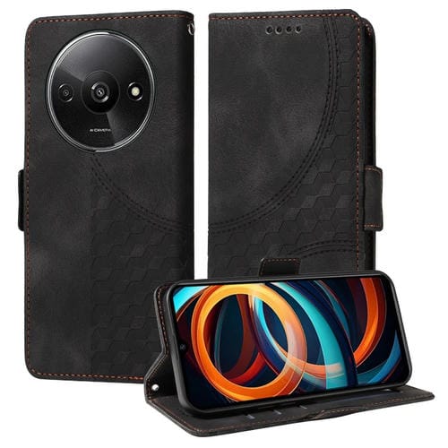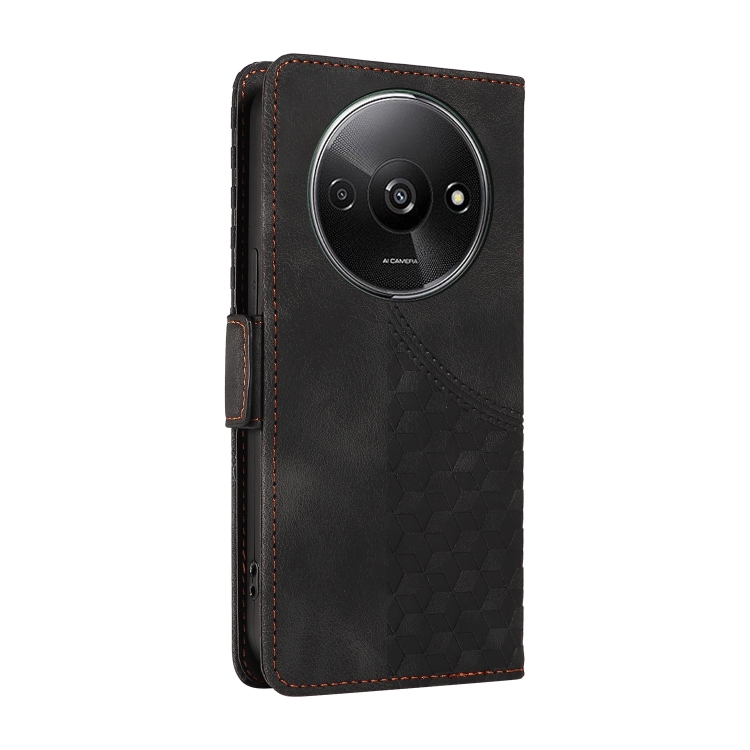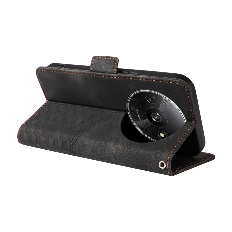 Para Xiaomi Poco C61 Funda para Teléfono de Cuero Estrellado con Rombos En Relieve (Negro)