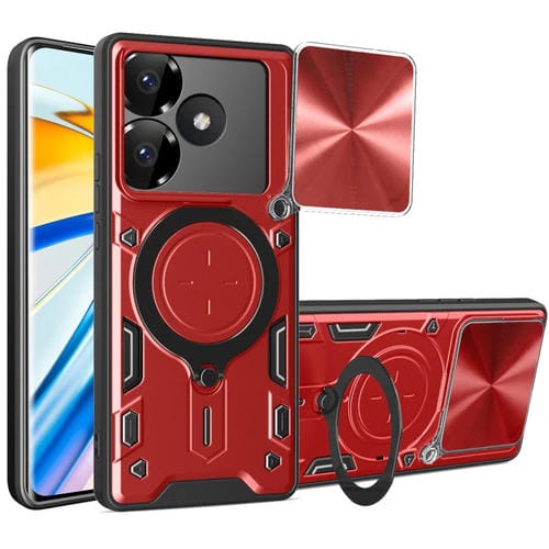 Para Xiaomi Poco F6 Cd Texture Sliding Camshield Funda para Teléfono con Soporte Magnético (Rojo)