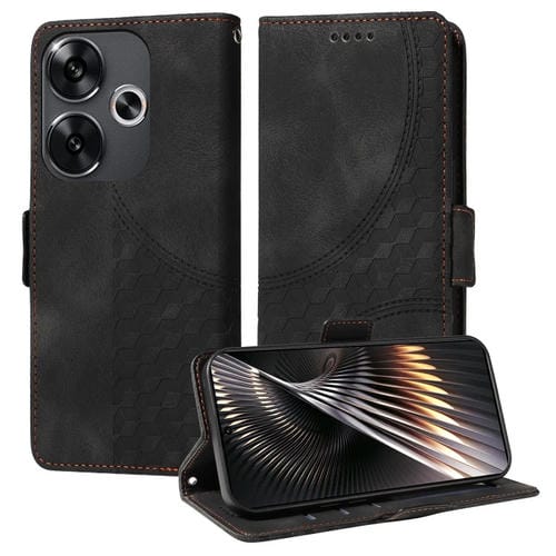 Para Xiaomi Poco F6 Funda de Teléfono de Cuero Estrellado con Rombos En Relieve (Negro)