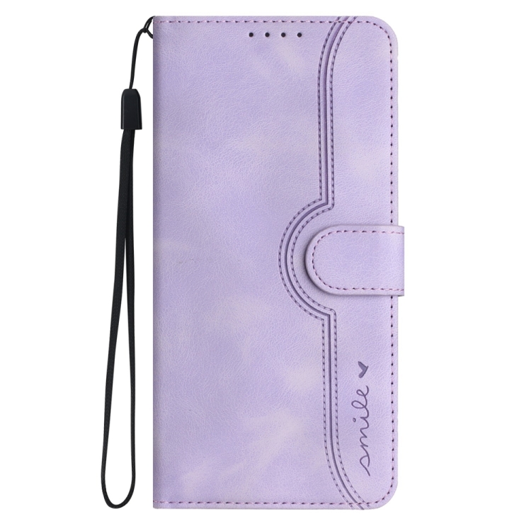 Para Xiaomi Poco F6 / Redmi Turbo 3 Funda de Cuero para Teléfono con Sensación de Piel y Patrón de Corazón (Púrpura)