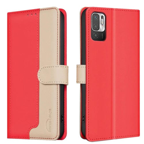 Para Xiaomi Poco M3 Pro / Redmi Note 10 5G Funda de Cuero Antirrobo Rfid a Juego de Colores (Rojo)