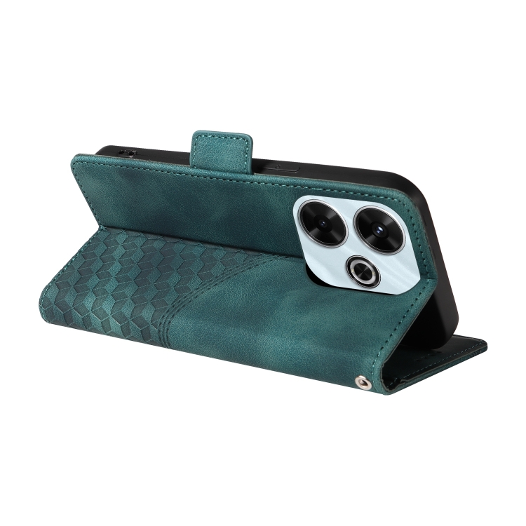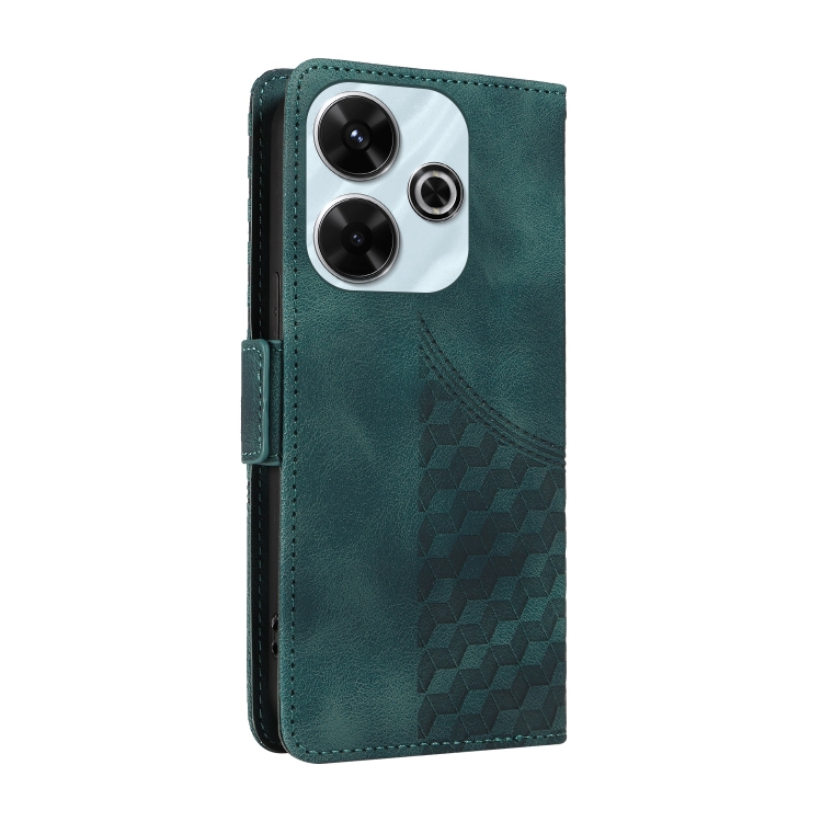 Para Xiaomi Poco M6 4G Funda de Teléfono de Cuero Estrellado con Rombos En Relieve (Verde)
