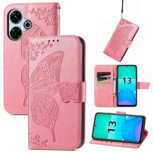 Para Xiaomi Redmi 13 4G Butterfly Love Flower Funda de Cuero En Relieve para Teléfono (Rosa)