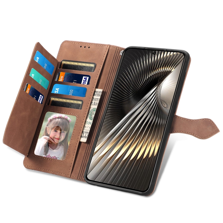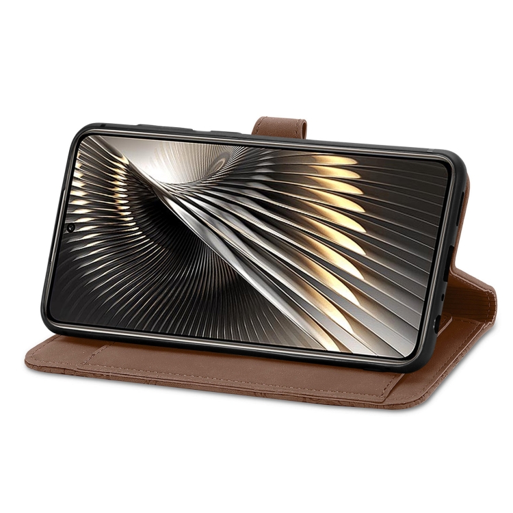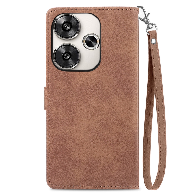 Para Xiaomi Redmi 13 4G Funda de Teléfono de Cuero con Cremallera y Flores En Relieve (Marrón)