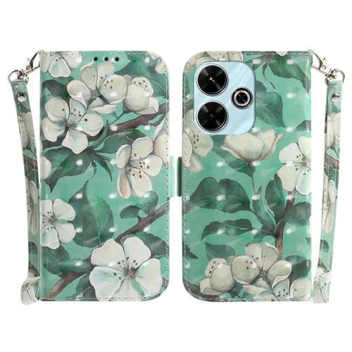 Para Xiaomi Redmi 13 4G Funda de Teléfono de Cuero con Tapa Horizontal de Color 3D (Flor de Acuarela)
