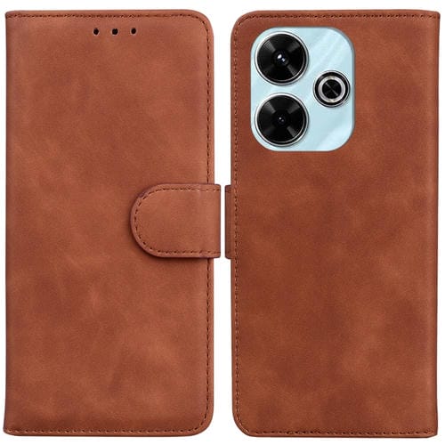 Para Xiaomi Redmi 13 4G Skin Feel Pure Color Flip Funda de Cuero para Teléfono (Marrón)