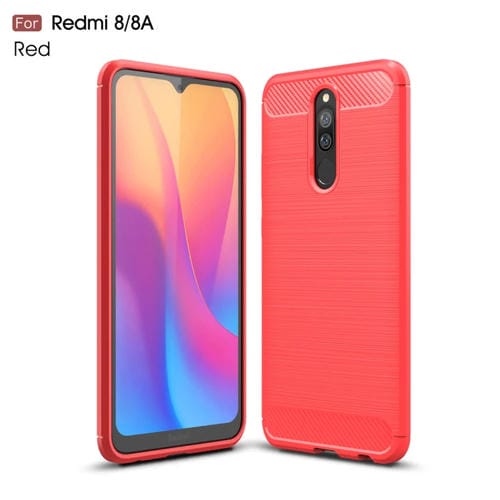 Para Xiaomi Redmi 8 Funda de TPU de Fibra de Carbono con Textura Cepillada (Rojo)