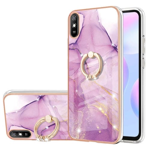Para Xiaomi Redmi 9A Patrón de Mármol de Electrochaplating Imd TPU Funda a Prueba de Golpes con Soporte de Anillo (Púrpura 001)