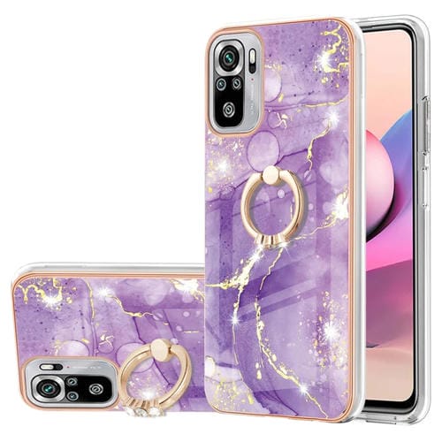 Para Xiaomi Redmi Note 10S / Nota 10 4G Patrón de Mármol de Electrochaplating Imd TPU Funda a Prueba de Golpes con Soporte de Anillo (Púrpura 002)