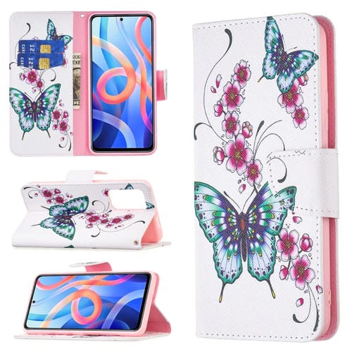 Para Xiaomi Redmi Note 11 Caja de Telefonía de Cuero de Dibujo de Color (Mariposa de Flor de Durazno)