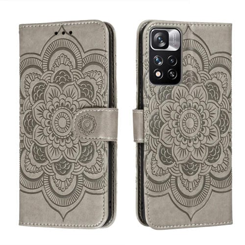 Para Xiaomi Redmi Note 11 Pro Sun Mandala Estuche de Cuero de Patrón de Nieve Mandala con Soporte y Ranuras para Tarjetas y Filtera (Gray)