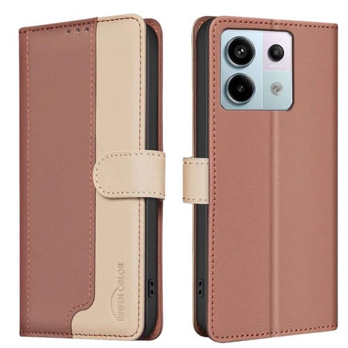 Para Xiaomi Redmi Note 13 Pro 4G Funda de Teléfono de Cuero Antirrobo Rfid a Juego de Colores Globales (Marrón)