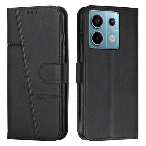 Para Xiaomi Redmi Note 13 Pro Funda de Teléfono de Cuero con Hebilla y Textura de Pantorrilla con Costuras (Negro)