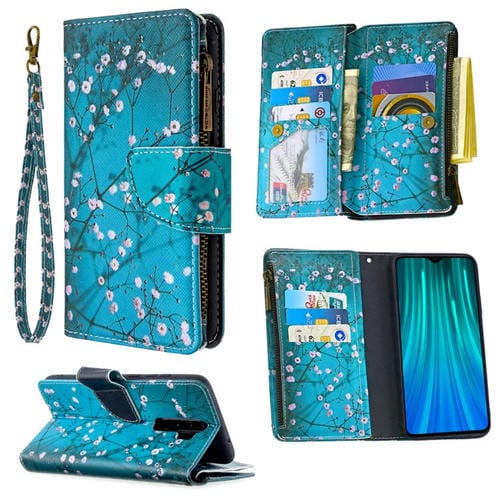 Para Xiaomi Redmi Note 8 Pro Patrón de Dibujo de Colores Cremallera Funda de Cuero con Tapa Horizontal con Soporte y Ranuras para Tarjetas y Billetera (Plum Blossom)