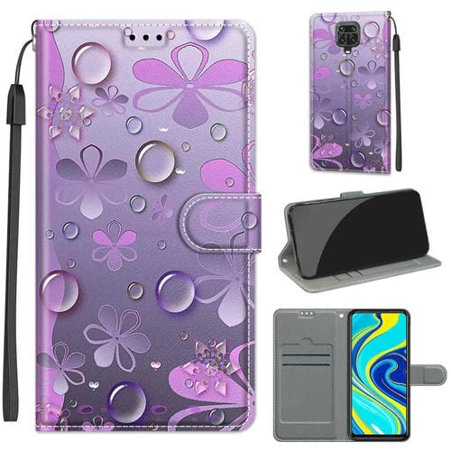 Para Xiaomi Redmi Note 9S / 9 Pro Voltaje Dibujo de Color Cierre Magnético Magnético Flip Pu Funda de Cuero con Soporte y Ranuras de Tarjetas (Caída de Agua C16 Seis Petal Flower)
