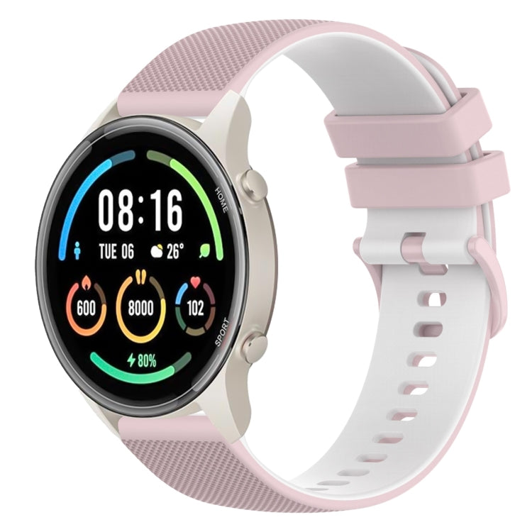Banda de Reloj de Silicona para Xiaomi Watch Sport 22mm Dos Colores a Cuadros (Rosa + Blanco)