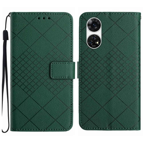 Funda de Cuero para ZTE Anshin Family A303Zt con Textura de Rejilla Rómbica (Verde)