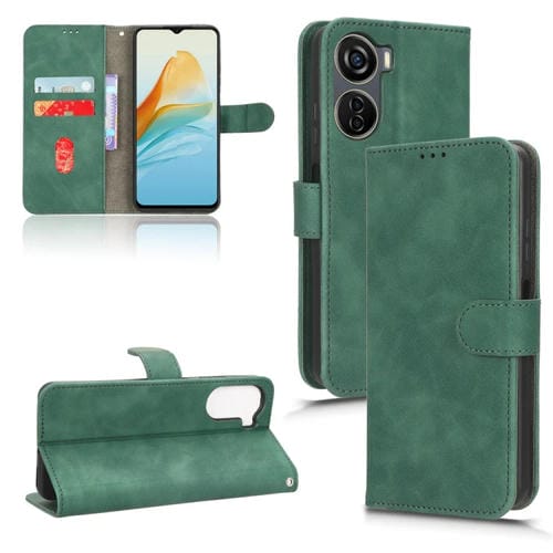 Funda de Cuero Flip Magnética para ZTE Axon 40 Lite Skin Feel (Verde)