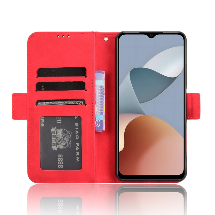 Funda para ZTE Blade A34 Skin Feel con Textura de Becerro y Ranuras para Tarjetas (Rojo)