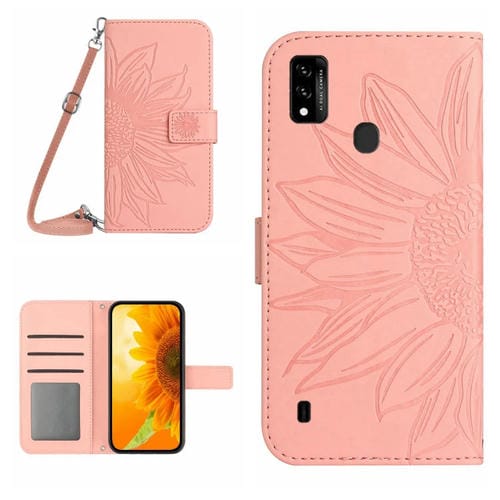 Funda de Cuero Flip para ZTE Blade A51/A7P con Cordón y Diseño Sun Flower (Rosa)
