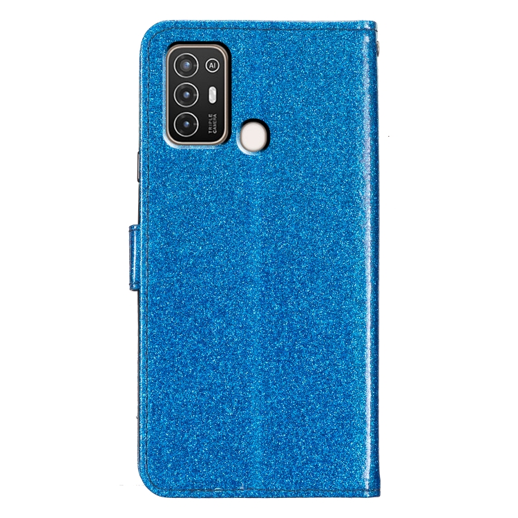 Funda de Cuero para ZTE Blade A52 con Tapa en Polvo y Purpurina (Azul)