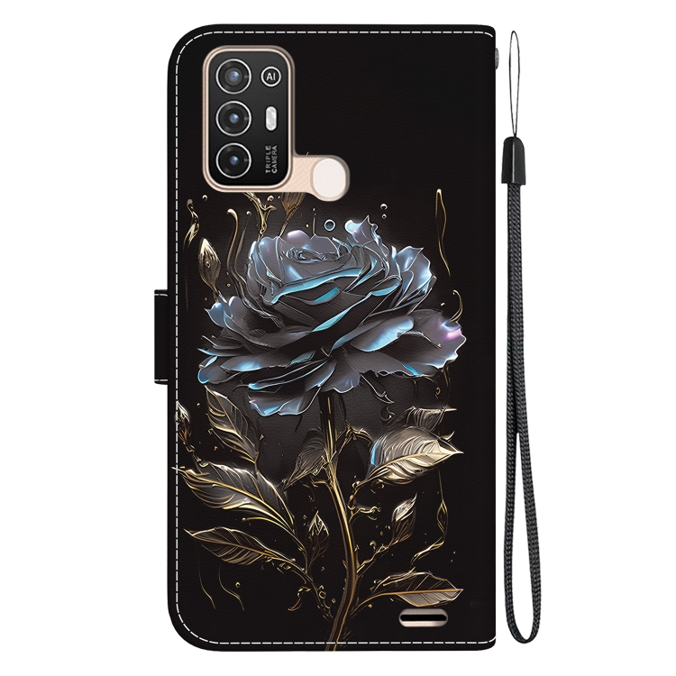 Funda de Cuero para ZTE Blade A52 con Dibujo Coloreado y Textura de Cristal (Rosa Negra)
