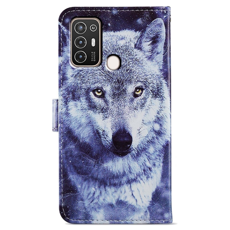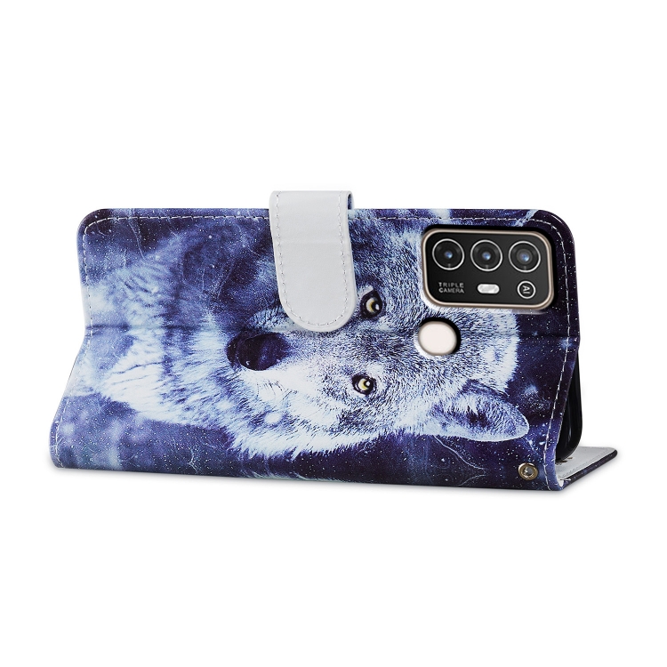 Funda de Cuero para ZTE Blade A52 con Tapa Horizontal y Patrón Lobo Blanco