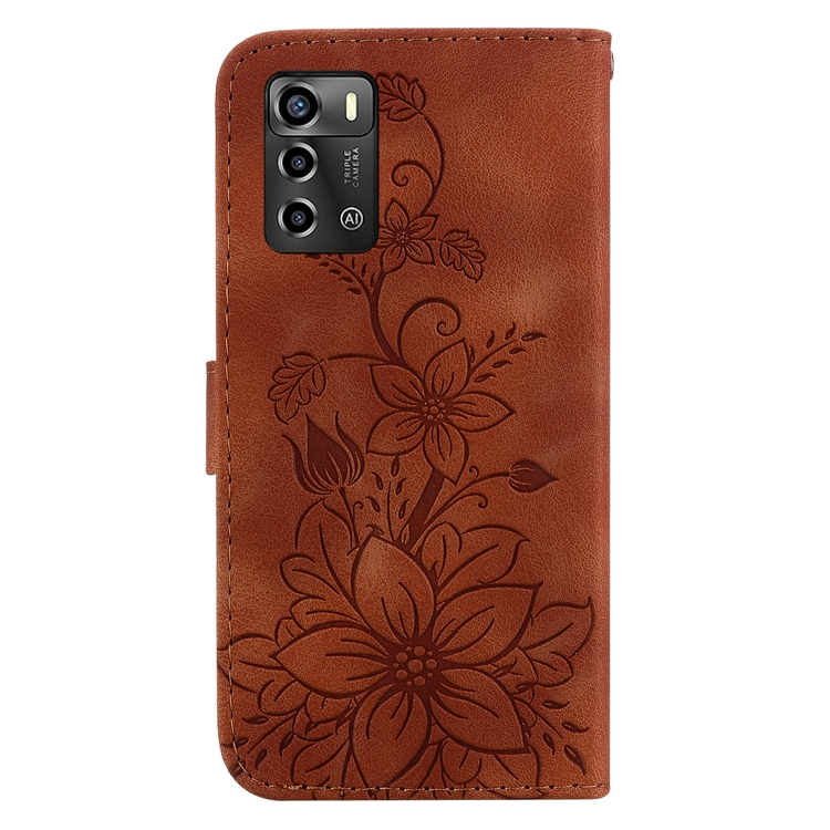 Estuche para Teléfono ZTE Blade A72 V40 Vita Lily Cuero En Relieve (Marrón)