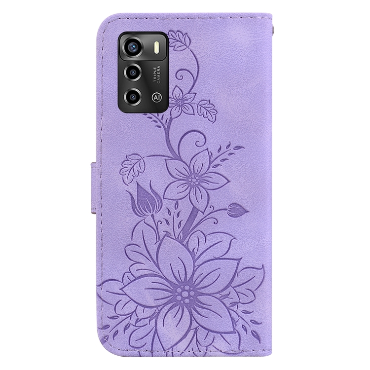 Estuche para teléfono ZTE Blade A72 V40 Vita Lily Cuero en Relieve (Púrpura)