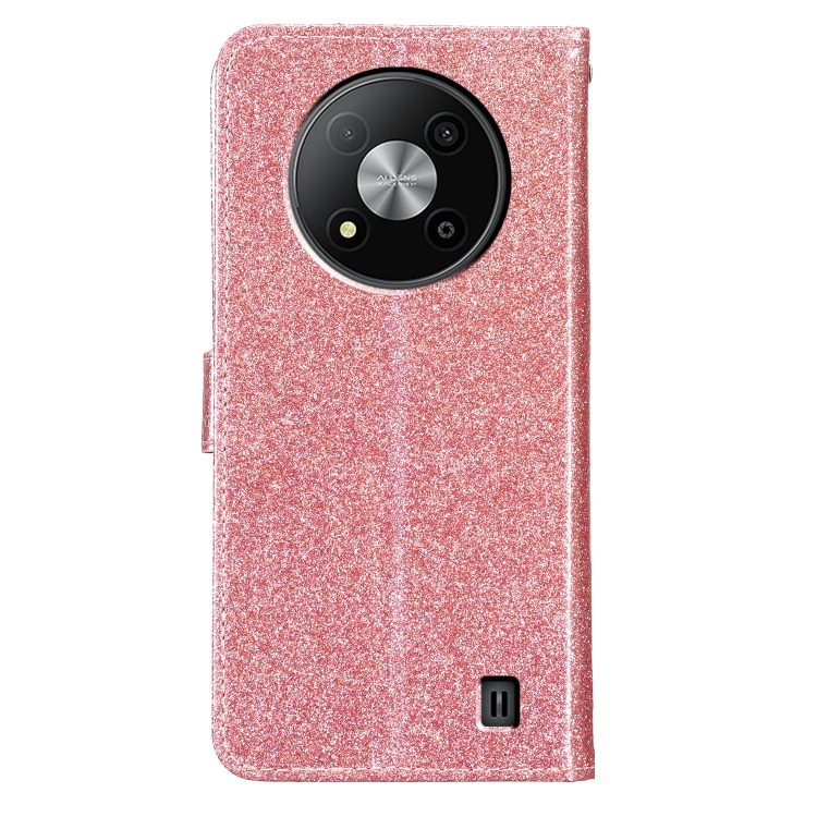 Funda de Cuero para ZTE Blade A73 5G con Tapa en Polvo y Purpurina (Oro Rosa)