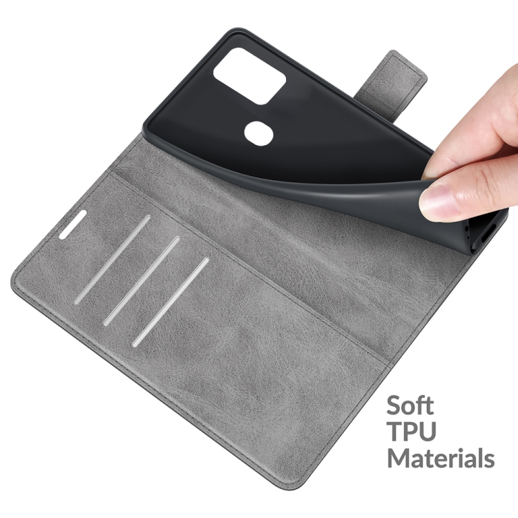 Para ZTE Blade A7S 2020 Patrón de pantorrilla retro Hebilla Caja de cuero Horizontal Flip Funda con soporte y ranuras para tarjeta y billetera (gris)