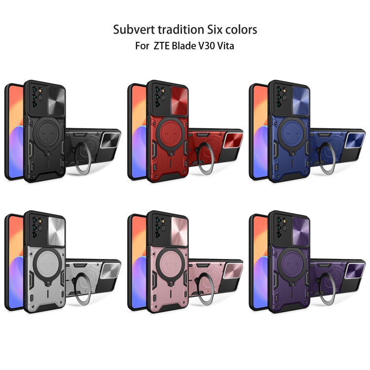 Funda para ZTE Blade V30 Vita con Camshield deslizante y Soporte Magnético (Rojo)