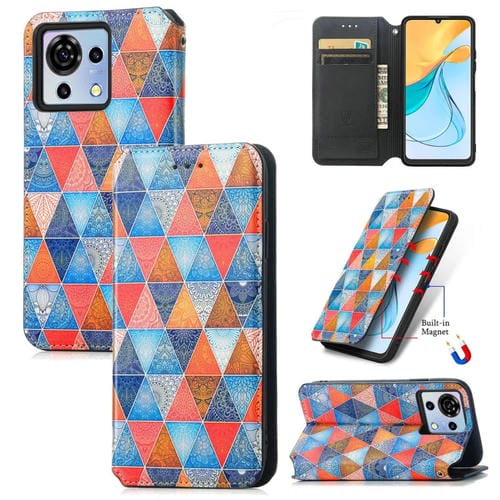 Funda de Cuero Magnética para ZTE Blade V50 Vita Caseneo con Diseño Rhombus Mandala