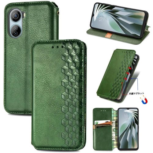 Funda para ZTE Libero 5G Iv Cuero Magnético Prensado con Rejilla Cúbica (Verde)