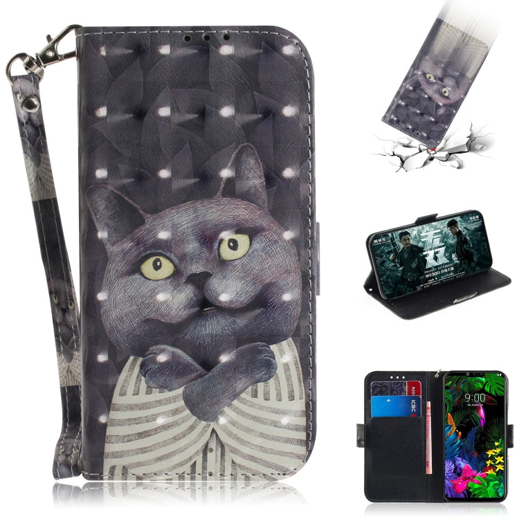 Funda de Cuero con Tapa Horizontal y Soporte para LG G8 Thinq (Hug Cat) con Patrón 3D Dibujo a Color
