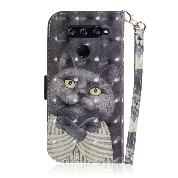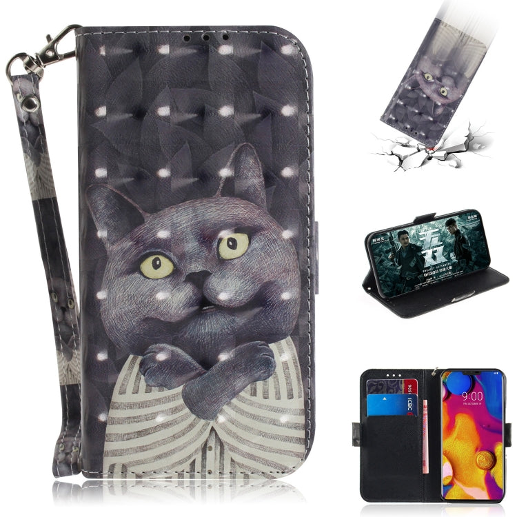 Funda de Cuero con Patrón 3D y Soporte para LG V40 Thinq (Hug Cat)