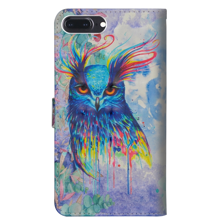 Funda para iPhone 7 Plus Patrón de Pintura 3D Cuero TPU + PU con Tapa Horizontal Soporte Ranuras Tarjetas Billetera (Búho de Acuarela)