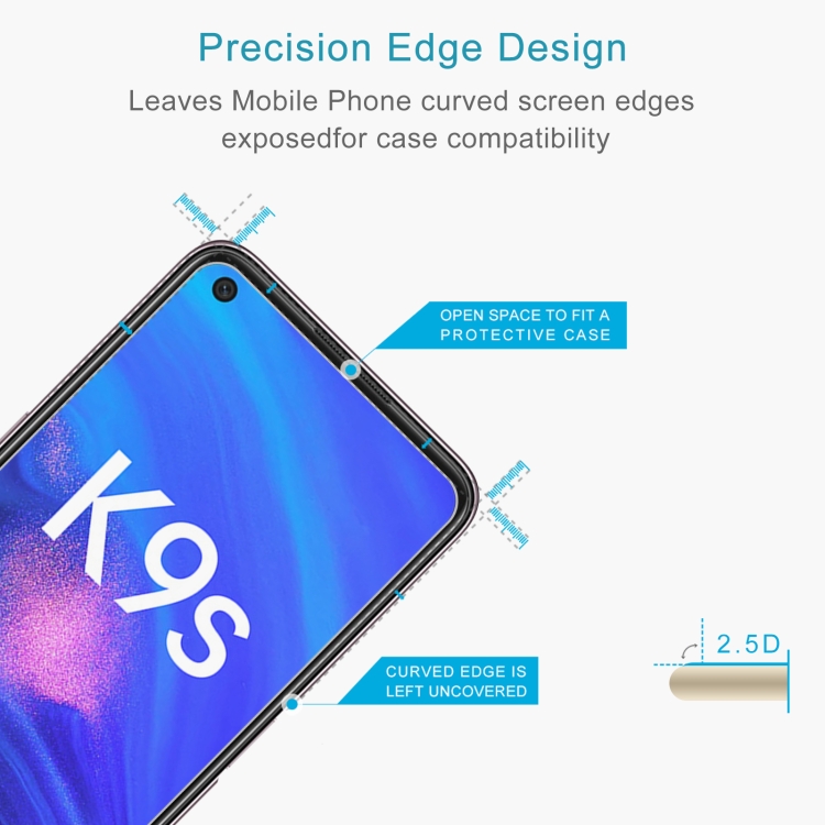 Película de Vidrio Templado de 0.26mm 9H 2.5D para Oppo K9S