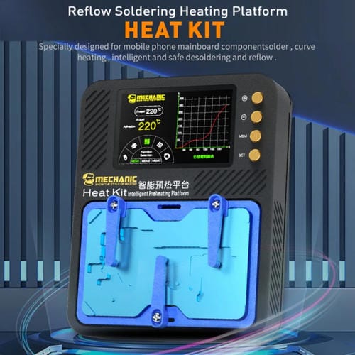 La Plataforma de Calentamiento de Soldadura por Reflujo Mecánico con Enchufe de la UE es una Herramienta profesional diseñada para facilitar procesos de soldadura y desoldadura en Placas Base de Teléfonos Móviles. Compatible con modelos iPhone X, XS, XS Max, 11, 11 Pro, 11 Pro Max, 12 Mini, 12, 12 Pro, 12 Pro Max, 13 Mini, 13, 13 Pro y 13 Pro Max, esta plataforma permite realizar calentamientos precisos y seguros mediante cinco modos profesionales y tres modos comunes de operación. Incorpora un sistema de calentamiento doble de cerámica MCH que garantiza una temperatura uniforme y un desempeño estable, así como un ventilador turbo para una eficiente disipación térmica. Esta plataforma es ideal para usuarios que reparan por cuenta propia y Técnicos especializados que requieren un control avanzado del proceso de soldadura por reflujo en dispositivos Móviles.