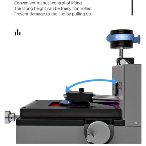 - Voltaje: 110V/220V; Potencia: 400W; Dimensiones: 32x24x29 cm; Control automático PLC; Función de calentamiento del Marco con temperatura constante; Ventosas de vacío superiores e inferiores para sujeción estable; Control manual de elevación ajustable; Función antidemolición y detección de Pantalla rota integrada