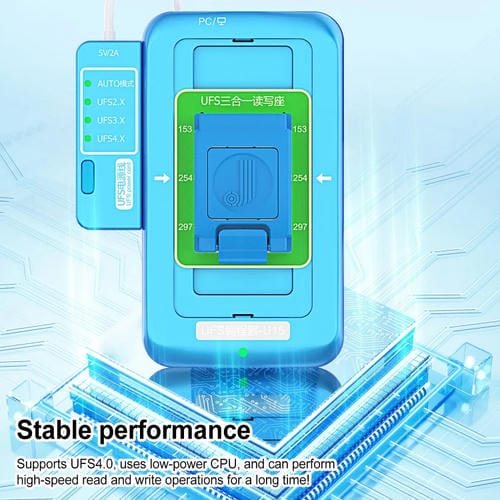 El Programador JCID UFS-U15 es una herramienta especializada diseñada para la lectura, escritura, expansión y reparación de memorias flash tipo UFS Nand. Compatible con versiones UFS 2.X, 3.X y 4.0, este programador ofrece una solución técnica avanzada para usuarios que requieren manipular memorias de alta velocidad en dispositivos electrónicos. Su diseño ultrafino y su CPU de bajo consumo garantizan un funcionamiento estable y eficiente durante largos periodos, facilitando procesos técnicos en entornos profesionales. Equipado con transmisión USB 3.0, permite velocidades de lectura de hasta 180 MB/s y escritura de hasta 350 MB/s, optimizando tiempos en tareas de programación y reparación de memorias flash.