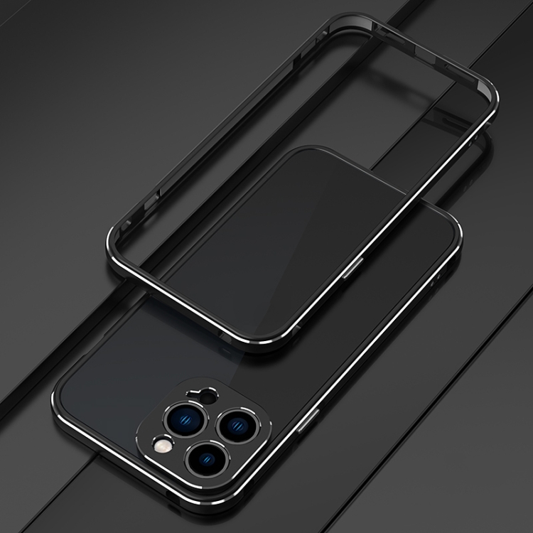 Protector de Lente + Estuche para iPhone 13 Pro Aurora Series con Marco de Metal (Negro Plateado)