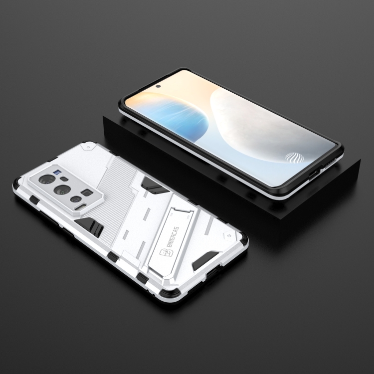 Punk Armor 2 En 1 PC + TPU Funda a Prueba de Golpes con Soporte Invisible para Vivo X60 Pro Plus 5G (Silver)
