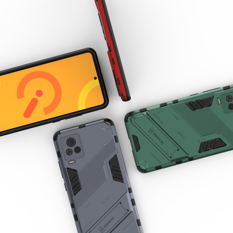 Punk Armor 2 En 1 PC + TPU Funda a Prueba de Golpes con Titular Invisible para Vivo Iqoo 7 (Gris)
