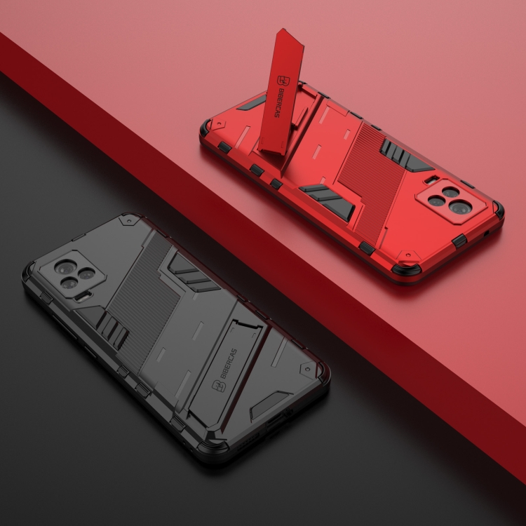 Punk Armor 2 En 1 PC + TPU Funda a Prueba de Golpes con Titular Invisible para Vivo Iqoo 7 (Plata)