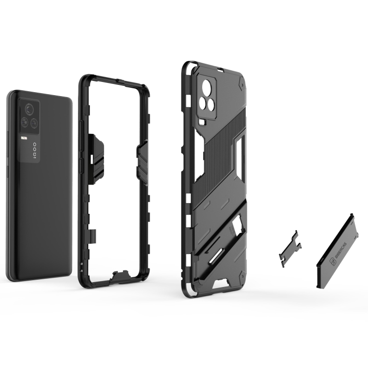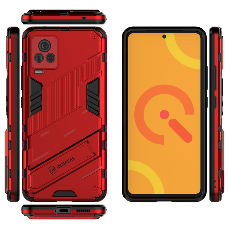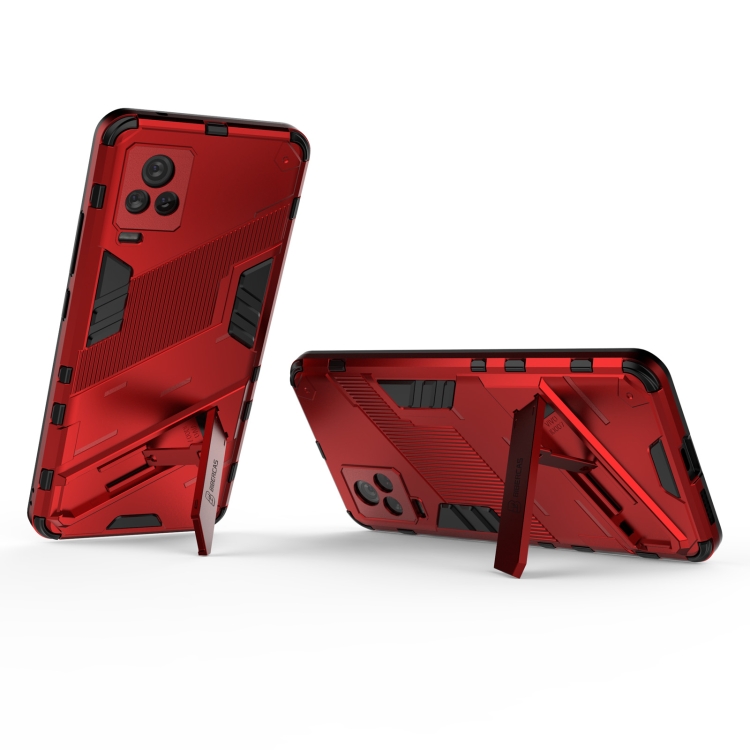 Punk Armor 2 En 1 PC + TPU Funda a Prueba de Golpes con Titular Invisible para Vivo Iqoo 7 (Rojo)