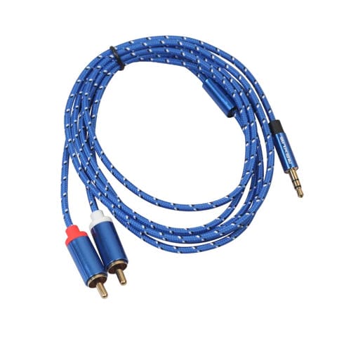 - 1x Cable de Audio Rexlis 3610 Trenzado de Algodón Azul Macho 3,5mm a Doble RCA Chapado en Oro 1,8 m